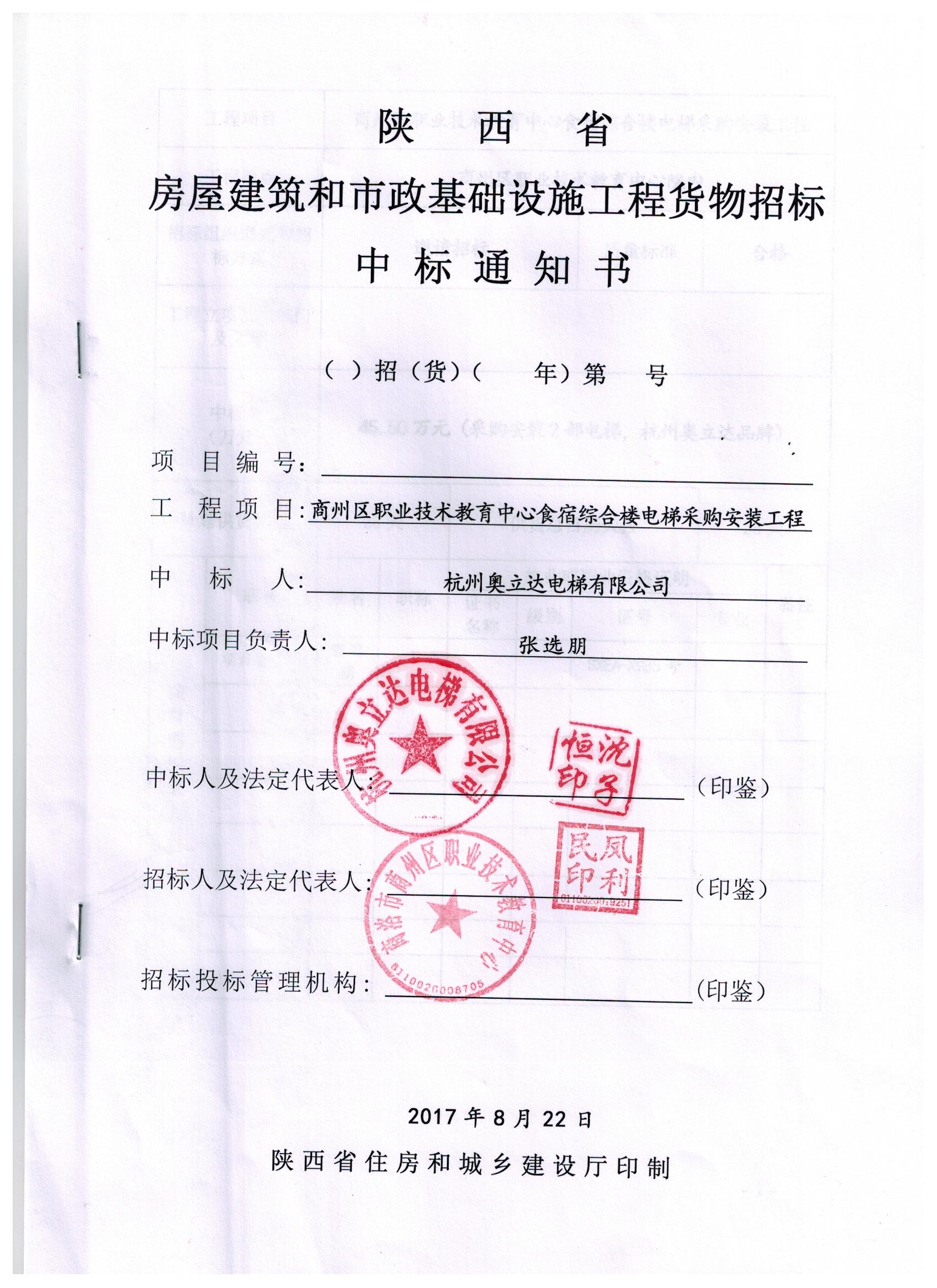 商洛市商州區(qū)職業(yè)技術教育中心電梯招標結(jié)果